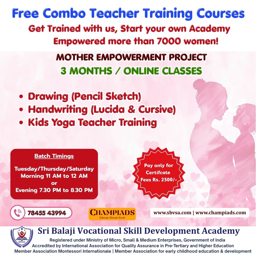 Limited Time Offer!!! Enroll in our integrated teacher training course combining Drawing, Handwriting and Kids Yoga. Learn from home, earn at your convenience, and become a certified teacher. Perfect for parents, tutors, and aspiring educators. Start your teaching journey today!